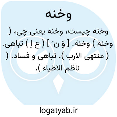 لغت نامه دهخدا ( وخنة ) وخنة. [ وَ ن َ ] ( ع اِ ) تباهی. ( منتهی الارب ). تباهی و فساد. ( ناظم الاطباء ).