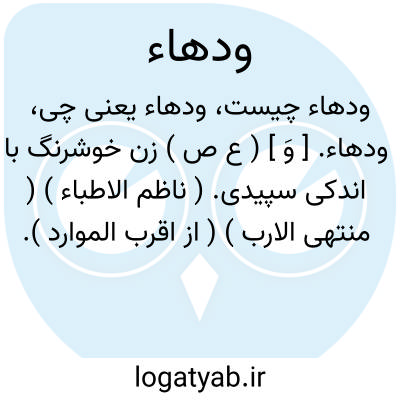 لغت نامه دهخدا ودهاء. [ وَ ] ( ع ص ) زن خوشرنگ با اندکی سپیدی. ( ناظم الاطباء ) ( منتهی الارب ) ( از اقرب الموارد ).