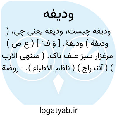 ( ودیفة ) ودیفة. [ وَ ف َ ] ( ع ص ) مرغزار سبز علف ناک. ( منتهی الارب ) ( آنندراج ) ( ناظم الاطباء ).