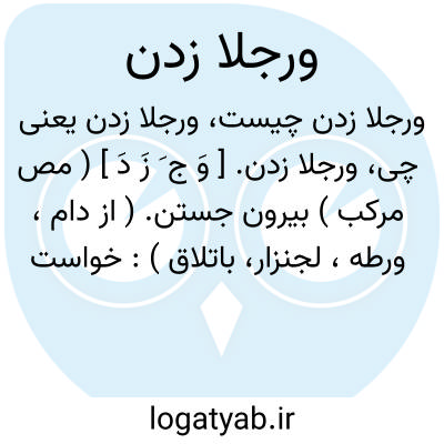 لغت نامه دهخدا ورجلا زدن. [ وَ ج َ زَ دَ ] ( مص مرکب ) بیرون جستن. ( از دام، ورطه، لجنزار، باتلاق ): خواست نیفتاده به دام بلاخیزد و زآن ورطه زند ورجلا.ایرج میرزا.