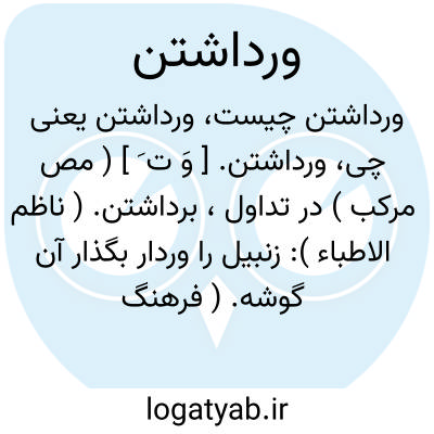 ورداشتن. [ وَ ت َ ] ( مص مرکب ) در تداول، برداشتن. ( ناظم الاطباء ): زنبیل را وردار بگذار آن گوشه. ( فرهنگ فارسی معین ). || ورداشتن جامه؛ قناس داشتن آن. ( یادداشت مرحوم دهخدا ). || افراشتن. ( ناظم الاطباء ). بلند نمودن. ( از ناظم الاطباء ). || تحمل کردن. تاب آوردن. ( فرهنگ فارسی معین ): من چشمم ورنمیدارد که کسی را گرسنه و تشنه ببینم. ( از فرهنگ فارسی معین از فرهنگ عامیانه جمال زاده ). || فروبردن چیزی در مقعد یا فرج.