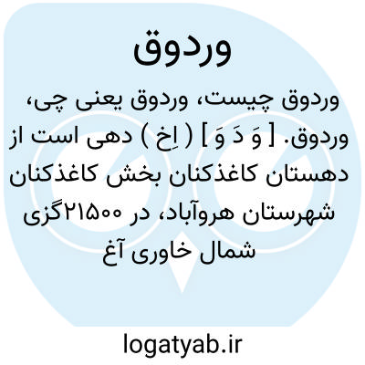 وردوق. [ وَ دَ وَ ] ( اِخ ) دهی است از دهستان کاغذکنان بخش کاغذکنان شهرستان هروآباد، در 21500گزی شمال خاوری آغ کند و 7000 گزی شوسه هروآباد به میانه، دارای 333 تن سکنه. ( از فرهنگ جغرافیایی ایران ج 4 ).