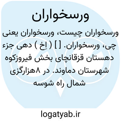 ورسخواران. [ ] ( اِخ ) دهی جزء دهستان قزقانچای بخش فیروزکوه شهرستان دماوند. در 8هزارگزی شمال راه شوسه فیروزکوه به تهران. سکنه 446 تن و آب آن از چشمه مهم تأمین می شود. محصول آنجا غلات، بنشن، میوجات و بیدستان است. شغل اهالی زراعت و سفیدگری و خیاطی و در زمستان به حدود گیلان میروند. مزرعه تخت علی و سرآسیاب سلیمان جزء این ده است. ایل الیکائی و اصانلو به حدود این ده می آیند. ( از فرهنگ جغرافیایی ایران ج 1 ).