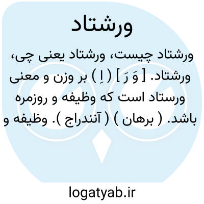 ورشتاد. [ وَ رَ ] ( اِ ) بر وزن و معنی ورستاد است که وظیفه و روزمره باشد. ( برهان ) ( آنندراج ). وظیفه و مقرری و ورستاد. ( ناظم الاطباء ). رجوع به ورستاد شود.