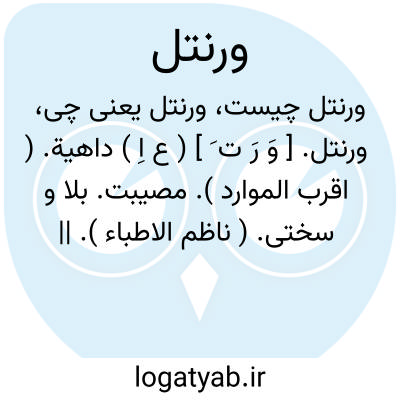 ورنتل. [ وَ رَ ت َ ] ( ع اِ ) داهیة. ( اقرب الموارد ). مصیبت. بلا و سختی. ( ناظم الاطباء ). || امر عظیم. ( اقرب الموارد ) ( ناظم الاطباء ). وَرَنتَلی ̍. ( اقرب الموارد ).