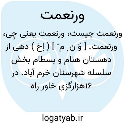 ورنعمت. [ وَ ن ِ م َ ] ( اِخ ) دهی از دهستان هنام و بسطام بخش سلسله شهرستان خرم آباد. در 16هزارگزی خاور راه شوسه خرم آباد به کرمانشاه واقع و تپه ماهور است. سکنه آن 150 تن است و آب آن از چشمه تأمین می شود و محصول آنجا غلات و لبنیات و شغل اهالی زراعت و گله داری است. ( از فرهنگ جغرافیایی ایران ج 6 ).