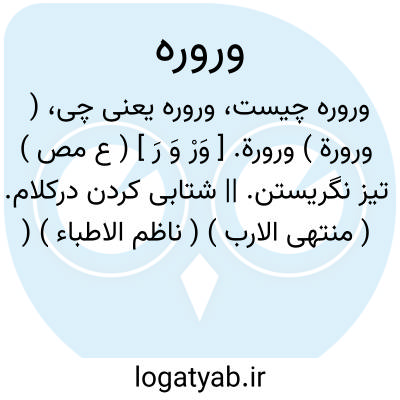 ( ورورة ) ورورة. [ وَرْ وَ رَ ] ( ع مص ) تیز نگریستن. || شتابی کردن درکلام. ( منتهی الارب ) ( ناظم الاطباء ) ( اقرب الموارد ).