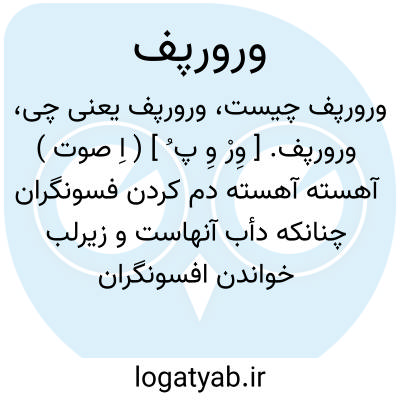 ورورپف. [ وِرْ وِ پ ُ ] ( اِ صوت ) آهسته آهسته دم کردن فسونگران چنانکه دأب آنهاست و زیرلب خواندن افسونگران فسون و عزیمت را و بر مسحور دم کردن اگر لفظ پف کردن را نیز در آن دخل دهند والا همان زیرلب خواندن افسون را و به هر تقدیر مخصوص است با لفظ سحر وجادو و یا هر چه به همین معنی آمده باشد و به تشدیدراء اول نیز آمده. ( آنندراج ). زمزمه ای که افسونگر در وقت افسون دادن میکند. ( ناظم الاطباء ):