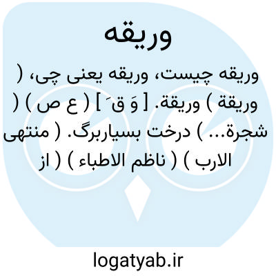 ( وریقة ) وریقة. [ وَ ق َ ] ( ع ص ) ( شجرة... ) درخت بسیاربرگ. ( منتهی الارب ) ( ناظم الاطباء ) ( از اقرب الموارد ) ( آنندراج ).