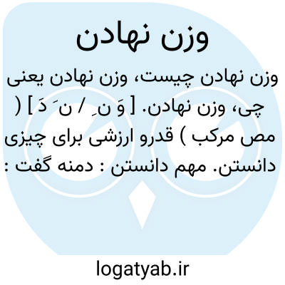وزن نهادن. [ وَ ن ِ / ن َ دَ ] ( مص مرکب ) قدرو ارزشی برای چیزی دانستن. مهم دانستن: دمنه گفت: ملک کار او را چندین وزن ننهد و اگر فرمایدبروم و او را بیارم. ( کلیله و دمنه چ مینوی ص 73 ).