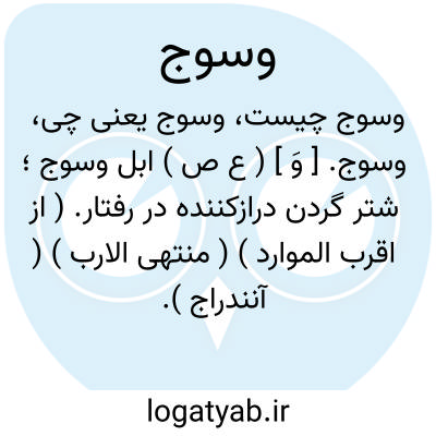 وسوج. [ وَ ] ( ع ص ) ابل وسوج؛ شتر گردن درازکننده در رفتار. ( از اقرب الموارد ) ( منتهی الارب ) ( آنندراج ).