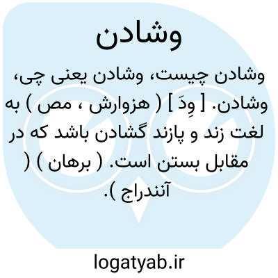 وشادن. [ وِدَ ] ( هزوارش، مص ) به لغت زند و پازند گشادن باشد که در مقابل بستن است. ( برهان ) ( آنندراج ). گشادن و باز کردن. ( ناظم الاطباء ).