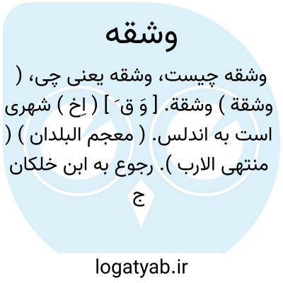( وشقة ) وشقة. [ وَ ق َ ] ( اِخ ) شهری است به اندلس. ( معجم البلدان ) ( منتهی الارب ). رجوع به ابن خلکان ج 2 ص 143 و الحلل السندسیه شود.