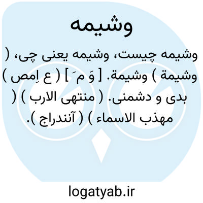 ( وشیمة ) وشیمة. [ وَ م َ ] ( ع اِمص ) بدی و دشمنی. ( منتهی الارب ) ( مهذب الاسماء ) ( آنندراج ). گویند: بینهما وشیمة؛ ای کلام شر و عداوة. ( اقرب الموارد ) ( مهذب الاسماء ). بدی و دشمنی و عداوت و شر. ( ناظم الاطباء ).