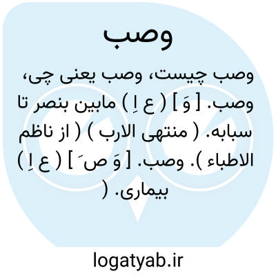 وصب. [ وَ ص ِ ] ( ع ص ) بیمار. ( مهذب الاسماء ) ( از اقرب الموارد ). بیمار و رنجور.( منتهی الارب ) ( ناظم الاطباء ). دردمند. ( مهذب الاسماء ). ج، وَصابی ̍، وِصاب. ( منتهی الارب ) ( ناظم الاطباء ).