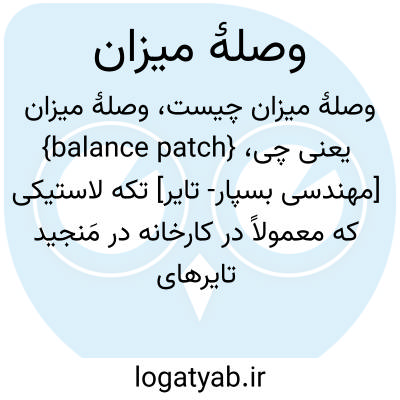 {balance patch} [مهندسی بسپار- تایر] تکه لاستیکی که معمولاً در کارخانه در مَنجید تایرهای سنگین یا تقریباً سنگین می چسبانند تا تایر میزان شود