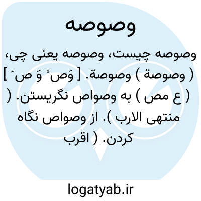 ( وصوصة ) وصوصة. [ وَص ْ وَ ص َ ] ( ع مص ) به وصواص نگریستن. ( منتهی الارب ). از وصواص نگاه کردن. ( اقرب الموارد ). || چشم گشادن سگ بچه. ( اقرب الموارد ) ( منتهی الارب ) ( ناظم الاطباء ). || تنگ بستن زن روی بند خود را ( منتهی الارب ) ( ناظم الاطباء )، بطوریکه جز چشمهای او پیدا نباشد. ( اقرب الموارد ). || چشم تنگ کرده نگریستن چیزی را. ( منتهی الارب ) ( ناظم الاطباء ) ( اقرب الموارد ).