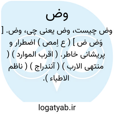 وض. [ وَض ض ] ( ع اِمص ) اضطرار و پریشانی خاطر. ( اقرب الموارد ) ( منتهی الارب ) ( آنندراج ) ( ناظم الاطباء ).