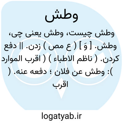 وطش. [ وَ ] ( ع مص ) زدن. || دفع کردن. ( ناظم الاطباء ) ( اقرب الموارد ): وطش عن فلان؛ دفعه عنه. ( اقرب الموارد ). || بیان نمودن یک جزء از کار را. ( ناظم الاطباء ): وطش الحدیث و الخبر؛ بیّن طرفاً منه. ( اقرب الموارد ). || آشکار نکردن سخن را و به طور اغلاق و اشکال سخن راندن. ( ناظم الاطباء ) ( اقرب الموارد ).