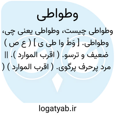 وطواطی. [ وَطْ وا طی ی ] ( ع ص ) ضعیف و ترسو. ( اقرب الموارد ). || مرد پرحرف پرگوی. ( اقرب الموارد ) ( ناظم الاطباء ).