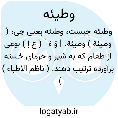 ( وطیئة ) وطیئة. [ وَ ءَ ] ( ع اِ ) نوعی از طعام که به شیر و خرمای خسته برآورده ترتیب دهند. ( ناظم الاطباء ) ( منتهی الارب ). || کشک شکرآمیخته. ( ناظم الاطباء ). پینوِ شکرآمیخته. ( منتهی الارب ). || جوال که در وی گوشت خشک و نان کاک دارند. ( ناظم الاطباء ) ( منتهی الارب ). غرارة. ( مهذب الاسماء ). حدیث: اخرج ثلاث اُکل من وطیئة؛ ای ثلاث قرص من غرارة. ( منتهی الارب ).