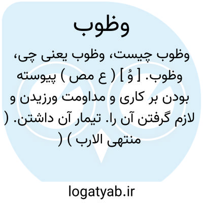 وظوب. [ وُ ] ( ع مص ) پیوسته بودن بر کاری و مداومت ورزیدن و لازم گرفتن آن را. تیمار آن داشتن. ( منتهی الارب ) ( اقرب الموارد ) ( ناظم الاطباء ).