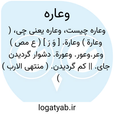 ( وعارة ) وعارة. [ وَ رَ ] ( ع مص ) وعر.وعور. وعورة. دشوار گردیدن جای. || کم گردیدن. ( منتهی الارب ) ( اقرب الموارد ) ( ناظم الاطباء ).