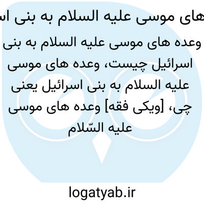 [ویکی فقه] وعده های موسی علیه السلام به بنی اسرائیل (قرآن). خداوند در قرآن به وعده های حضرت موسی علیه السّلام به بنی اسرائیل اشاره نموده است.