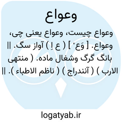 وعواع. [ وَع ْ ] ( ع اِ ) آواز سگ. || بانگ گرگ وشغال ماده. ( منتهی الارب ) ( آنندراج ) ( ناظم الاطباء ). || گروه مردم، یا قوم با بانگ و غوغا. ( منتهی الارب ) ( آنندراج ) ( ناظم الاطباء ). || مرد بیهوده گوی. ( منتهی الارب ) ( آنندراج ). || خروش مردم. || دیده بان، واحد و جمع در وی یکسان است. ( ناظم الاطباء ) ( آنندراج ) ( منتهی الارب ).