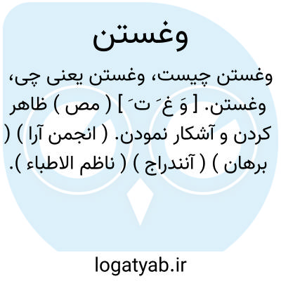 وغستن. [ وَ غ َ ت َ ] ( مص ) ظاهر کردن و آشکار نمودن. ( انجمن آرا ) ( برهان ) ( آنندراج ) ( ناظم الاطباء ).