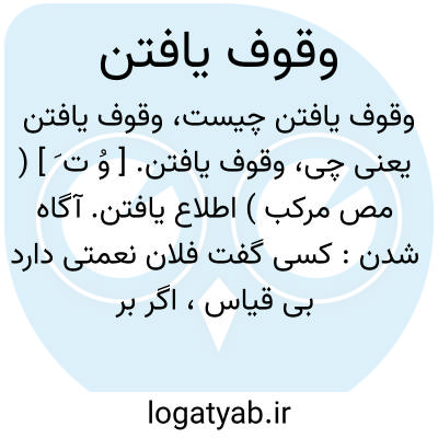 وقوف یافتن. [ وُ ت َ ] ( مص مرکب ) اطلاع یافتن. آگاه شدن: کسی گفت فلان نعمتی دارد بی قیاس، اگر بر حاجت تو وقوف یابد... ( گلستان سعدی ). و همان که بر فرمان وقوف یافت بی توقف عزیمت نمود. ( ظفرنامه یزدی چ امیرکبیر ج 2 ص 367 ).
