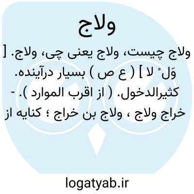 ولاج. [ وِ ] ( ع اِ ) در. || زمین سخت. || وادی. ج، وُلُج ( اقرب الموارد )، وُلوج.