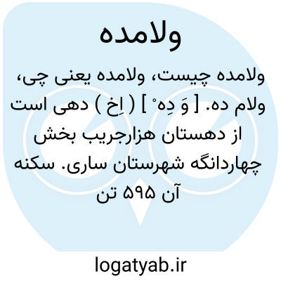 ولام ده. [ وَ دِه ْ ] ( اِخ ) دهی است از دهستان هزارجریب بخش چهاردانگه شهرستان ساری. سکنه آن 595 تن است. ( از فرهنگ جغرافیایی ایران ج 3 ).
