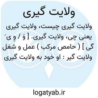 ولایت گیری. [ وَ / وِ ی َ گی ] ( حامص مرکب ) عمل و شغل ولایت گیر: او خود به ولایت گیری رفته بود. ( سفرنامه ناصرخسرو چ دبیرسیاقی ص 3 ). و او به ولایت گیری به اصفهان رفته بود. ( سندبادنامه ).