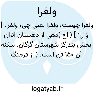 ولفرا. [ وَ ل َ ] ( اِخ )دهی از دهستان انزان بخش بندرگز شهرستان گرگان. سکنه آن 150 تن است. ( از فرهنگ جغرافیایی ایران ج 3 ).