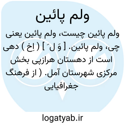 ولم پائین. [ وَ ل َ ] ( اِخ ) دهی است از دهستان هرازپی بخش مرکزی شهرستان آمل. ( از فرهنگ جغرافیایی ایران ج 3 ).
