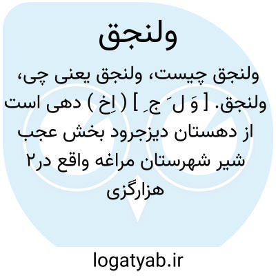 ولنجق. [ وَ ل َ ج ِ ] ( اِخ ) دهی است از دهستان دیزجرود بخش عجب شیر شهرستان مراغه واقع در2 هزارگزی خاور شوسه مراغه به دهخوارقان، دارای 325 تن سکنه. رجوع به فرهنگ جغرافیایی ایران ج 4 شود.