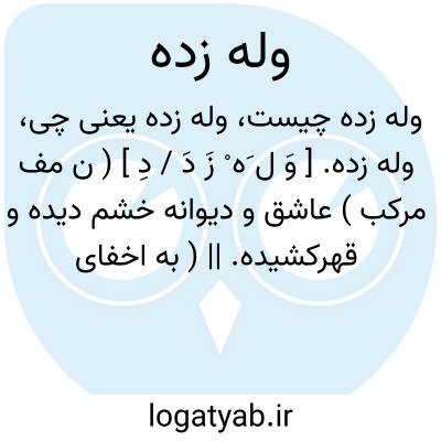 وله زده. [ وَ ل َه ْ زَ دَ / دِ ] ( ن مف مرکب ) عاشق و دیوانه خشم دیده و قهرکشیده. || ( به اخفای هاء وله ) خشمگین و قهرآلود. ( آنندراج ) ( برهان ).
