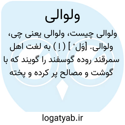 ولوالی. [وَل ْ ] ( اِ ) به لغت اهل سمرقند روده گوسفند را گویند که با گوشت و مصالح پر کرده و پخته باشند. ( برهان ) ( آنندراج ). جرغند. جگرآگند. عصیب. نقانق. نکانه.
