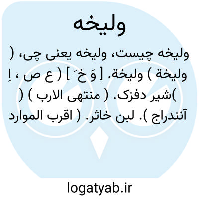 ( ولیخة ) ولیخة. [ وَ خ َ ] ( ع ص، اِ )شیر دفزک. ( منتهی الارب ) ( آنندراج ). لبن خاثر. ( اقرب الموارد ). || گل تنک. ( آنندراج ) ( منتهی الارب ). وحل. ( اقرب الموارد ). || زمین پیچیده گیاه. ( منتهی الارب ) ( از اقرب الموارد ) ( آنندراج ).
