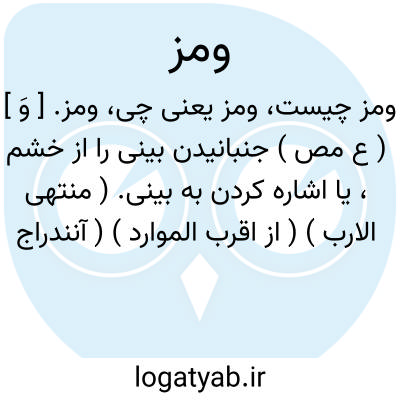 ومز. [ وَ ] ( ع مص ) جنبانیدن بینی را از خشم، یا اشاره کردن به بینی. ( منتهی الارب ) ( از اقرب الموارد ) ( آنندراج ).