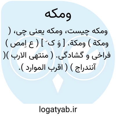لغت نامه دهخدا ( ومکة ) ومکة. [ وَ ک َ ] ( ع اِمص ) فراخی و گشادگی. ( منتهی الارب )( آنندراج ) ( اقرب الموارد ). فسحت. ( اقرب الموارد ).