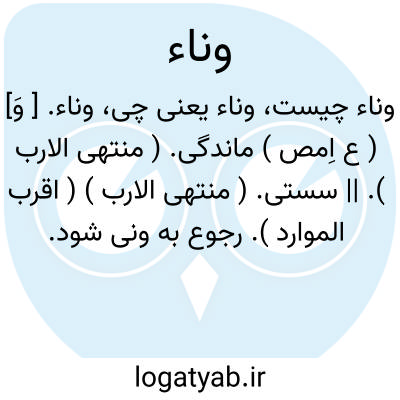 لغت نامه دهخدا وناء. [ وَ] ( ع اِمص ) ماندگی. ( منتهی الارب ). || سستی. ( منتهی الارب ) ( اقرب الموارد ). رجوع به ونی شود.