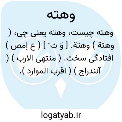 لغت نامه دهخدا ( وهتة ) وهتة. [ وَ ت َ ] ( ع اِمص ) افتادگی سخت. ( منتهی الارب ) ( آنندراج ) ( اقرب الموارد ).