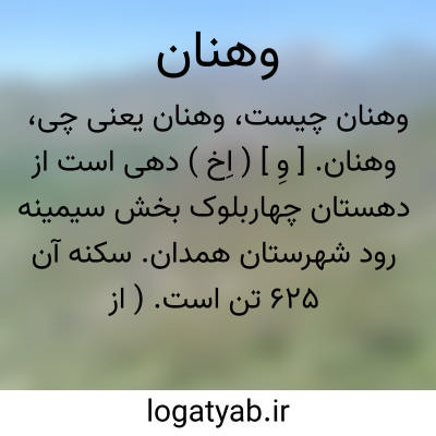 وهنان. [ وِ ] ( اِخ ) دهی است از دهستان چهاربلوک بخش سیمینه رود شهرستان همدان. سکنه آن 625 تن است. ( از فرهنگ جغرافیایی ایران ج 5 ).