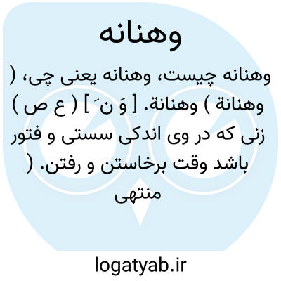 ( وهنانة ) وهنانة. [ وَ ن َ ] ( ع ص ) زنی که در وی اندکی سستی و فتور باشد وقت برخاستن و رفتن. ( منتهی الارب ) ( از اقرب الموارد ).