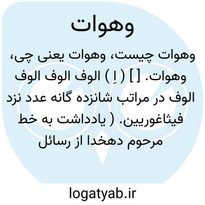 وهوات. [ ] ( اِ ) الوف الوف الوف الوف در مراتب شانزده گانه عدد نزد فیثاغوریین. ( یادداشت به خط مرحوم دهخدا از رسائل اخوان الصفا ).
