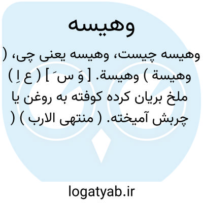 ( وهیسة ) وهیسة. [ وَ س َ ] ( ع اِ ) ملخ بریان کرده کوفته به روغن یا چربش آمیخته. ( منتهی الارب ) ( آنندراج ) ( از اقرب الموارد ).
