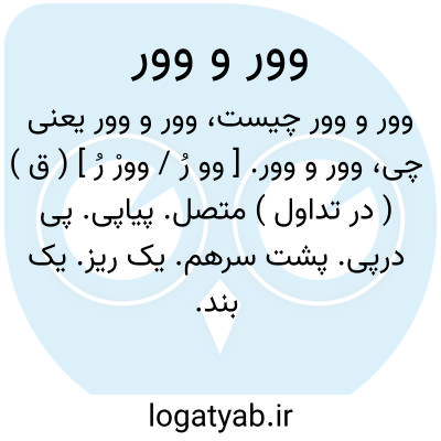 وور و وور. [ وو رُ / وورْ رُ ] ( ق ) ( در تداول ) متصل. پیاپی. پی درپی. پشت سرهم. یک ریز. یک بند.