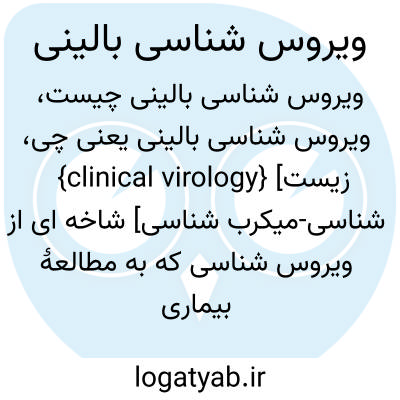 {clinical virology} [زیست شناسی-میکرب شناسی] شاخه ای از ویروس شناسی که به مطالعۀ بیماری های عفونی ناشی از عوامل ویروسی می پردازد